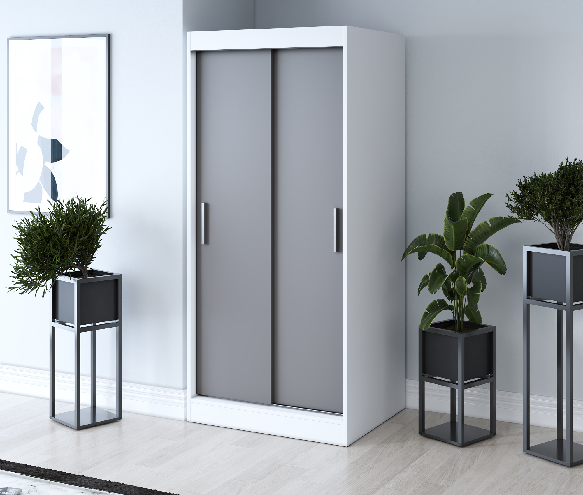 Szafa przesuwna 90×200 Gold , Biały mat / Antracyt mat