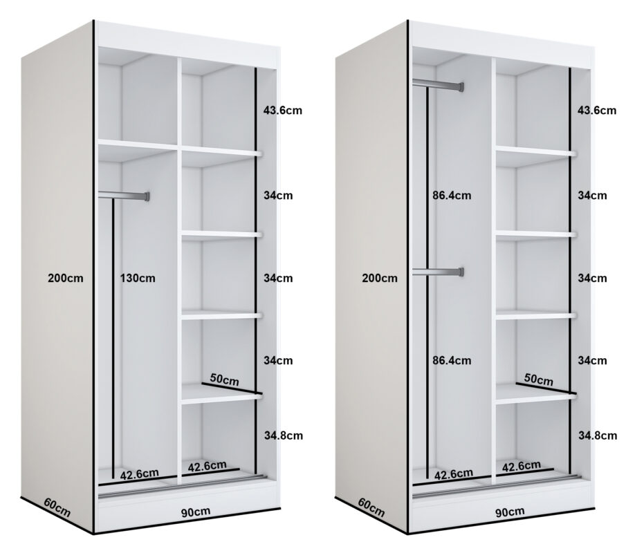 • W cenie: 5 półek oraz 2 drążki. Elementy potrzebne do obu konfiguracji.